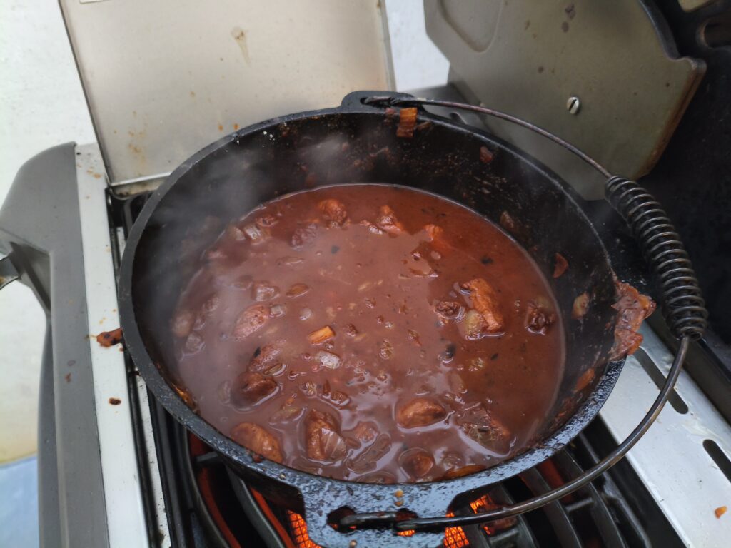 Zutaten:1 Kg Gulasch (Schwein , Rind oder gesmischt)Zwiebeln grob geschnitten, gleiche Menge (Volumen – nicht Gewicht)150 ml Rotwein1 EL Tomatenmark2 EL Butterschmalz1 EL Mehl1 EL Pakrikapulver Edelsüß2 Knoblauchzehen gerieben oder[…]