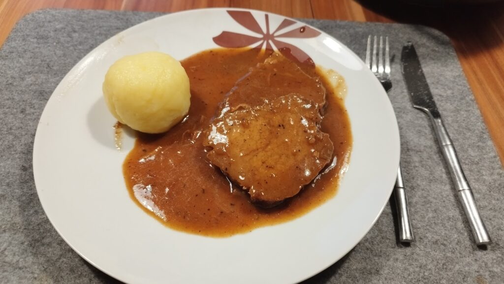 Zutaten: 1,5 KG Semmerrolle 1 Zwiebel 2 Karotten 2 brisen Salz 1 Liter Wein – Branntweinessig 1 Liter kaltes Wasser 1 EL Sauerbratengewürz 2 Lorbeerblätter 3 Päckchen Maggi Sauerbratensoße 1 Soßenlebkuchen Heißes Wasser nach Bedarf Wer einen Sauerbraten machen möchte, muss sich bewusst sein, dass die Vorbereitungen bereits 3 bis 5 Tage vor der eigentlichen…