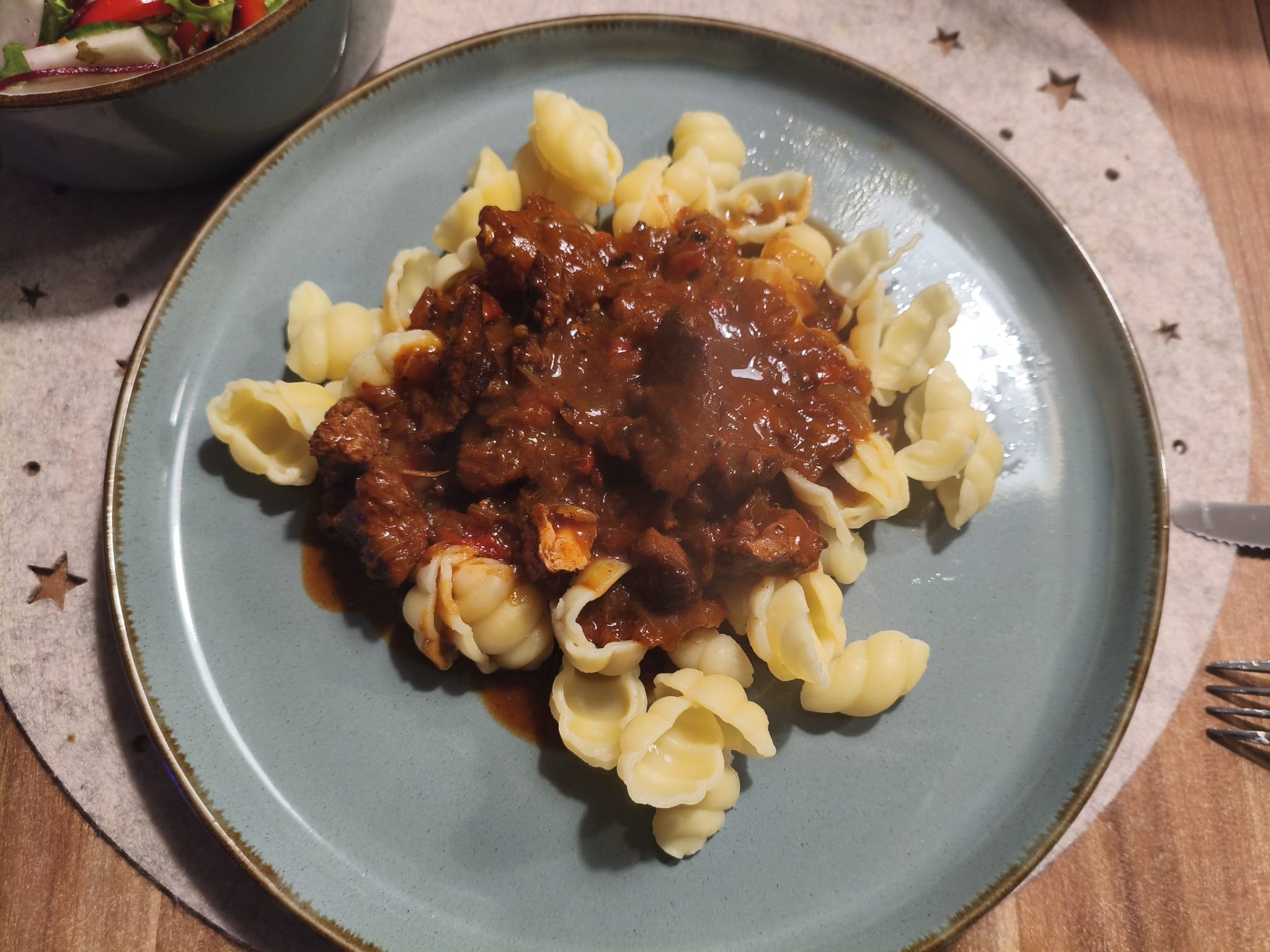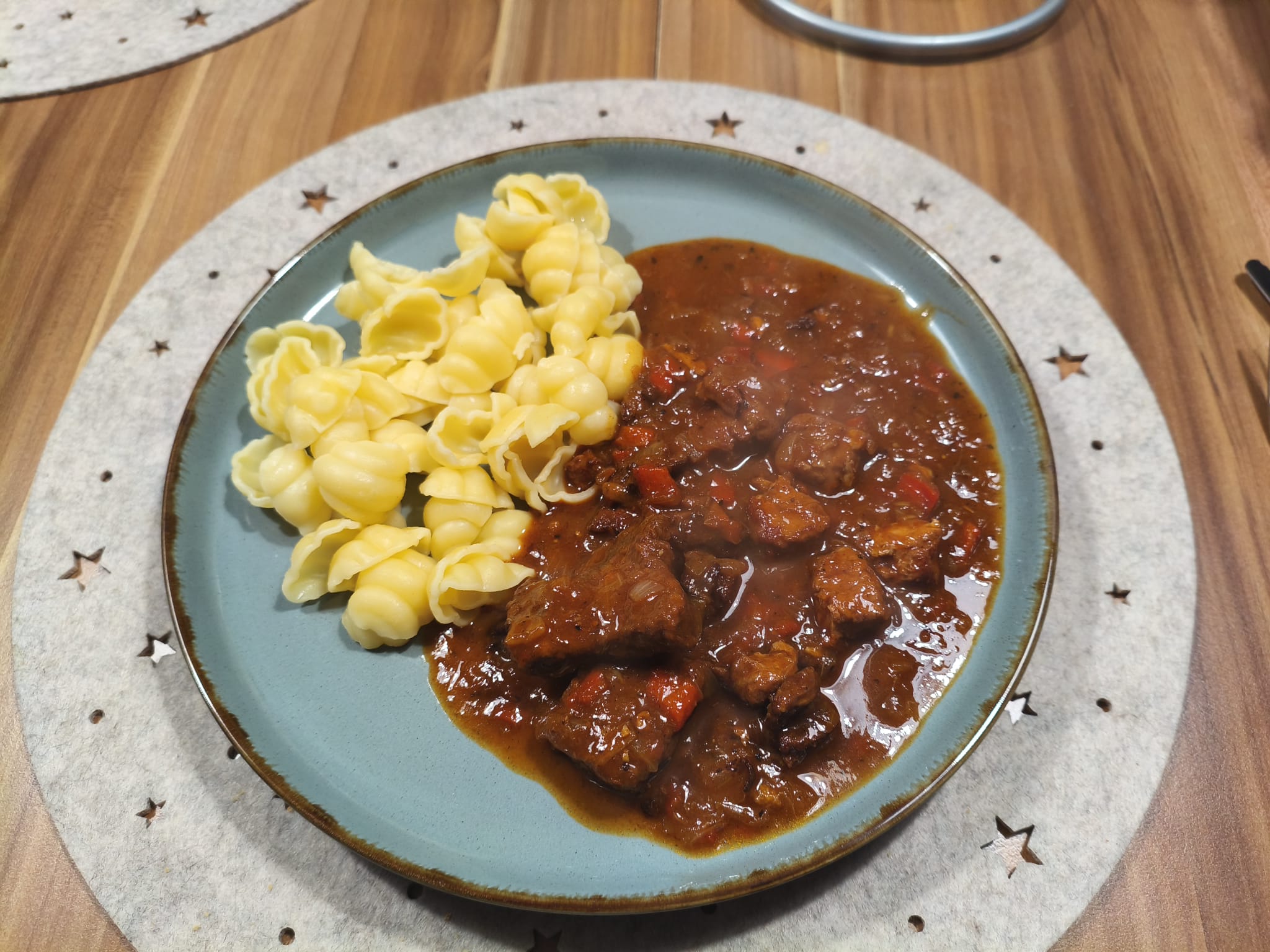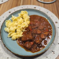 - 1 Kg Gulasch (Schwein , Rind oder gesmischt)