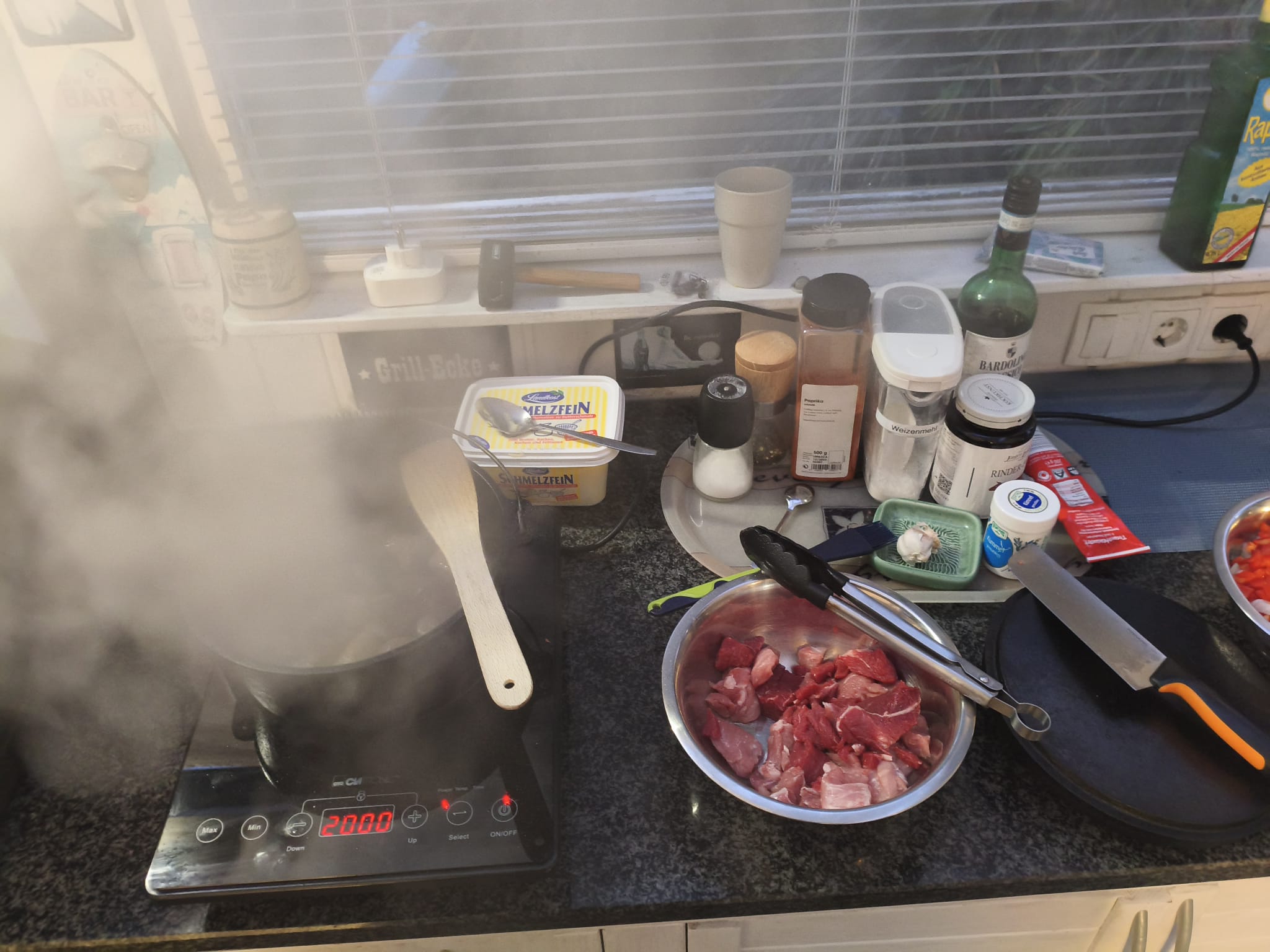 Tipp: Die Brühe vor dem aufgiesen erwärmen. Dies verhindert dass unser Fleisch zu sehr abgekühlt und u.U. etwas zäh wird.
